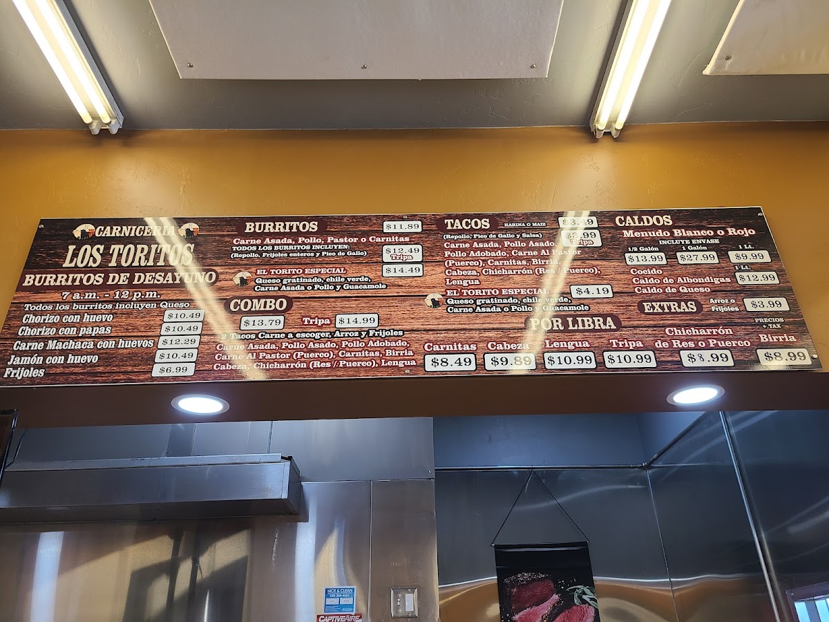 Carniceria Los Toritos offers a vibrant and flavorful menu that blends traditional Mexican street food with authentic, hearty options. For breakfast, try the huevos rancheros or the chilaquiles, both of which are served with rich, flavorful salsas that complement the eggs perfectly. The baleadas, a popular Honduran dish, are a must-try, featuring warm flour tortillas filled with beans, cheese, and your choice of protein. For those looking for a lighter option, the tacos and burritos are filled with fresh, high-quality meats such as carne asada, al pastor, and carnitas, all grilled to perfection. If you're in the mood for something more substantial, the torta sandwiches come piled high with your choice of meat, melted cheese, and tangy toppings. Don't miss the grilled meats section, where steaks and chicken are cooked to order and served with fresh sides like guacamole and rice. The star of the menu, however, might just be the barbacoa: slow-cooked, tender beef that practically melts in your mouth. Whether you’re looking for a quick snack or a filling meal, the vibrant flavors and generous portions at Carniceria Los Toritos are sure to leave you satisfied.